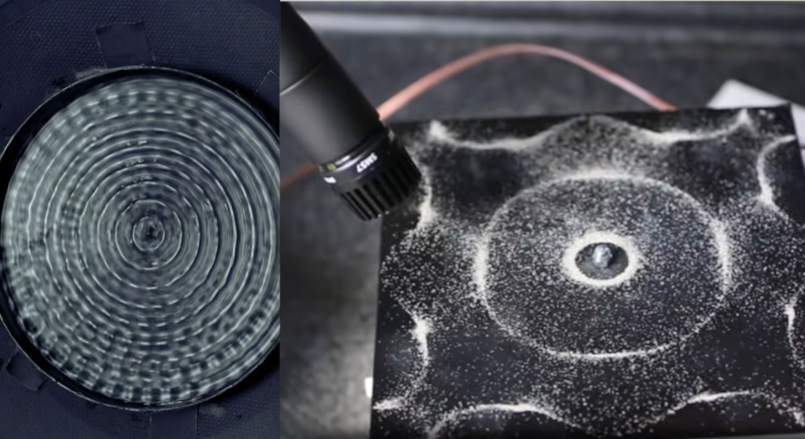 Ernst descubrió la relación entre hacer sonar un arco de violín conectado a unas placas metálicas con los patrones que se formaban en polvo fino o arenoso en la superficie de la placa. A esto se le llamo "figuras sonoras de Chladni" y luego Jenny desarrolló la ¨Cimática¨, que se refiere a la visualización de esta relación entre el sonido y materia a través de diferentes materiales ya no solo arena sino agua a través de otros instrumentos como generadores de frecuencia y bocinas. Hoy, todo ello ha llegado a un nivel artístico de expresión como el de este video de 6 min que con una demostración de música electrónica ejemplifica todo lo anteriormente mencionado, no solo te lo recomiendo para que ancles esta información sino para que tu mente se maraville un poco. CYMATICS: Science Vs. Music - Nigel Stanford