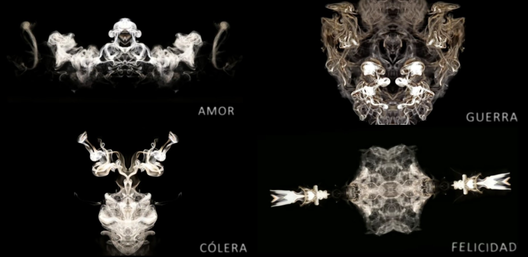 Para entrar ya en tema de cómo todo esto se conecta con nuestro nombre, dejo como referencia para aquellos fascinados con esta información previa, el trabajo del fotógrafo brasileño Ricardo Fujii y su exposición ¨Ilumina¨ quien se inspiró en el trabajo de Emoto para fotografiar en efecto espejo al humo dispuesto en el centro de un círculo de personas en meditación... a las que se les pedía que conectaran y se concentraran en una palabra y experimentaran sensaciones y sentimientos relacionadas a la misma. El resultado es casi místico, como su hubiera podido captar a los espíritus detrás de dichas palabras.