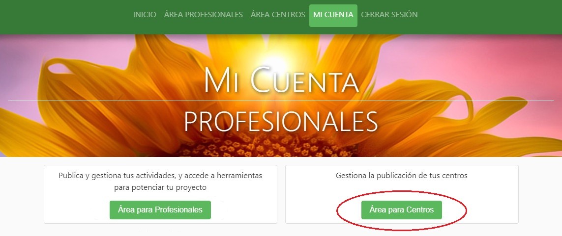 • Si tienes un centro, ya tienes una cuenta pero no sabes si tu cuenta es de profesional, puede que te dieras de alta con una cuenta de usuario no profesional. Si ese es tu caso, no te preocupes: Inicia sesión desde el siguiente enlace para acceder directamente al Área para Centros.